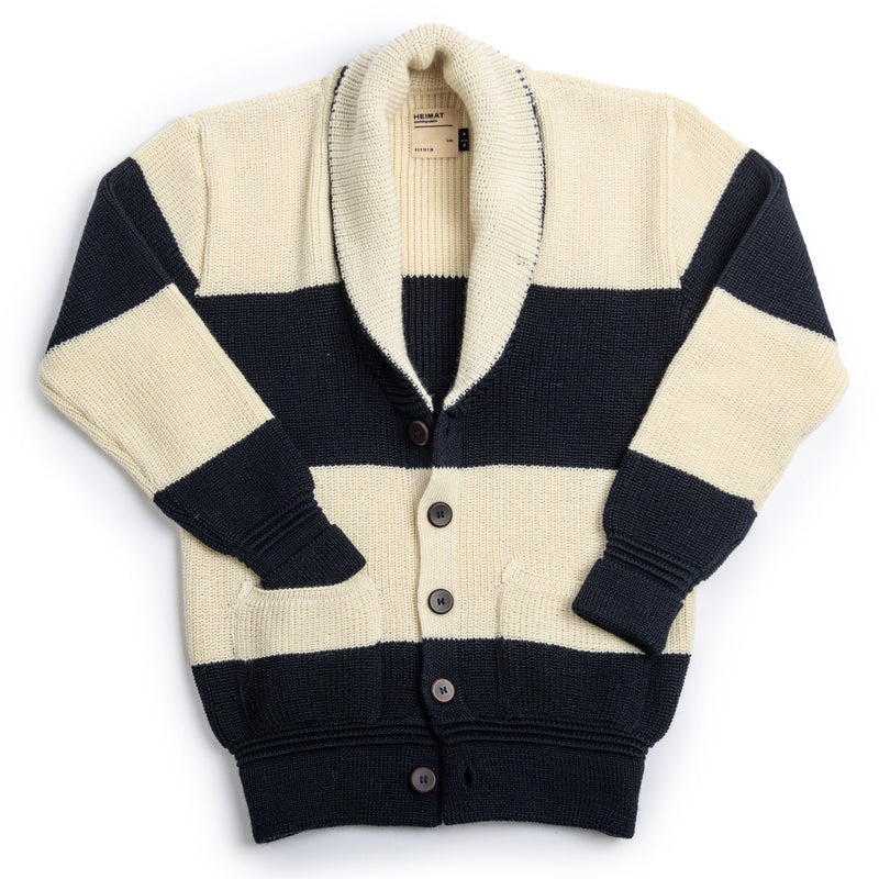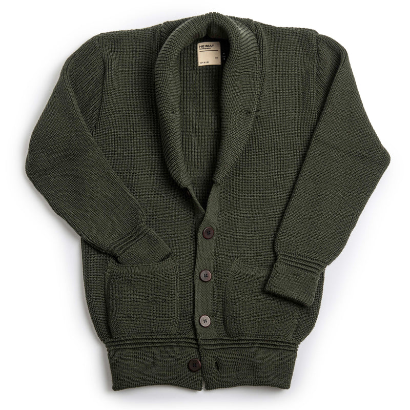 Our Eiger cardigan might have been inspired by the first mountaineers to ascend the formidable Eiger Nordwand in the Bernese Alps, but its perfectly suited to sitting by the fire with your feet up. Its knitted in Germany from a high-quality virgin wool, with a generous shawl collar, square patch pockets, and a five-button front. The sleeves and collar are attached by hand, which is more time consuming and labour intensive than using a standard machine stitch but results in a superior finish.